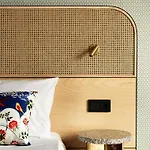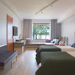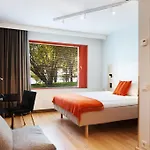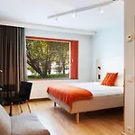 Hotel Hanasaari's accommodation options are designed to immerse guests in comfort and tranquility. Each room features interiors, textiles, and details that reflect a nature-inspired color scheme of greens, browns, and oranges, creating a peaceful environment for rest. The artful integration of art at an early stage of planning enriches the guest experience, making every stay a unique encounter with Nordic design.